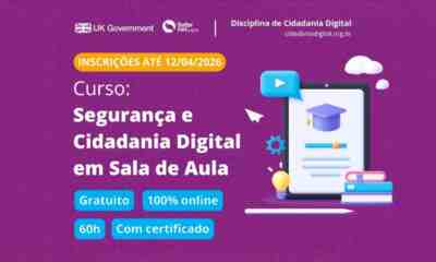 Estão abertas as inscrições para o curso gratuito “Segurança e Cidadania Digital em Sala de Aula – 2ª edição”, destinado...