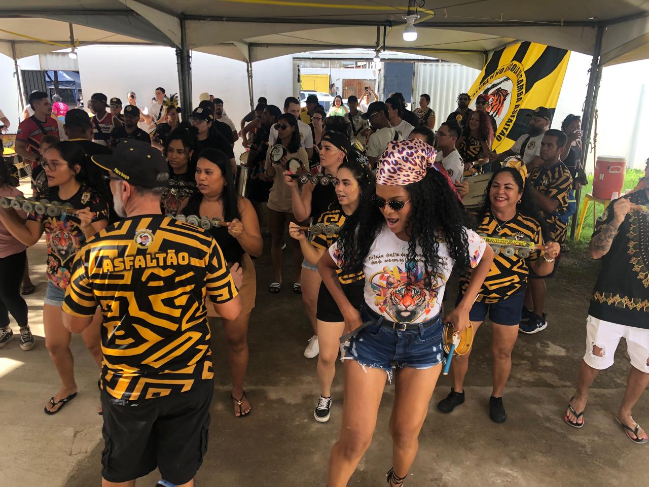 A celebração foi embalada pela bateria Pura Raça, que levantou o público ao ensaiar o hino da escola. O momento foi de emoção e pertencimento, reforçando a força da agremiação que atravessa gerações.