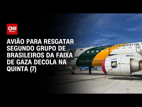 O avião que vai resgatar o segundo grupo de brasileiros da Faixa de Gaza decola na manhã de quinta-feira (7) para o Egito. 85 pessoas esperam no sul do território palestino por uma autorização dos governos egípcio e israelense. As informações são da analista de Política da CNN Jussara Soares. #CNNBrasil