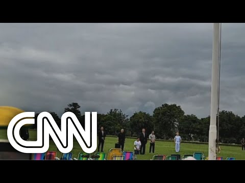 O presidente Jair Bolsonaro (PL) participou, na tarde desta terça-feira (20), da cerimônia de arriamento da bandeira, em Brasília. A solenidade ocorreu no Palácio da Alvorada, e o presidente estava acompanhado da primeira-dama, Michelle Bolsonaro. #CNNBrasil