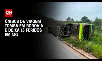 Um ônibus de viagem com 24 passageiros tombou na rodovia BR-356 em Itabirito (MG). Segundo o Corpo de Bombeiros, o acidente ocorreu devido a óleo na...