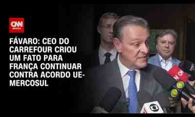 Durante uma coletiva de imprensa, o ministro da Agricultura e Pecuária, Carlos Fávaro, disse que a declaração do CEO do Carrefour na França, Alexandre Bompard, de...