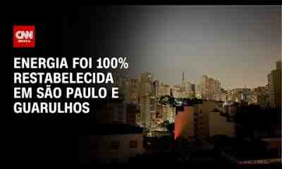 Segundo a Enel, 100% da energia elétrica foi restabelecida na cidade de São Paulo. A EDP, a concessionária que distribui energia em Guarulhos, também afirmou o...