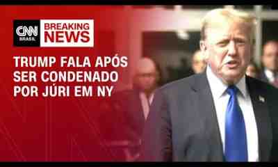 O ex-presidente dos Estados Unidos Donaldo Trump fala após ter sido condenado em 34 acusações de fraude fiscal, incluindo suborno de uma atriz de filmes adultos,...