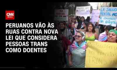 Centenas de manifestantes marcharam, na sexta-feira (17), na capital peruana, para exigir a anulação da nova lei que descreve pessoas trans, entre outras, como portadoras de...