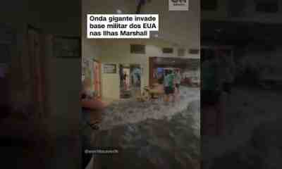 Uma onda gigante invadiu o restaurante de uma base militar dos Estados Unidos na ilha de Roi Namur, que faz parte das Ilhas Marshall, localizadas na...