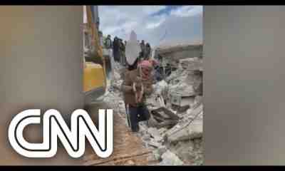 Um bebê recém-nascido foi resgatado em meio aos escombros de sua casa, no norte da Síria, destruída pelo terremoto de segunda-feira (6). Seu cordão umbilical ainda...