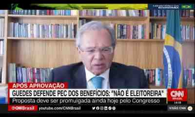 O ministro da Economia, Paulo Guedes, defendeu a PEC dos Benefícios, que concede mais de R$ 40 bilhões em auxílios à população, e afirmou que o...