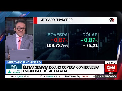 O Ibovespa fechou com uma queda de 0,87% no começo da última semana de 2022. O dólar, por outro lado, teve alta e fechou em R$ 5,21. Confira as principais informações do mercado nesta edição do CNN Mercado, com Fernando Nakagawa. #CNNBrasil