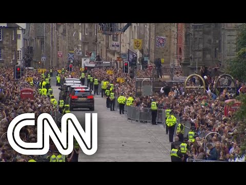 O cortejo fúnebre da rainha Elizabeth II foi aplaudido pela multidão que acompanhava o trajeto durante a chegada a Edimburgo, na Escócia, pouco antes de chegar ao Palácio de Holyroodhouse #CNNBrasil