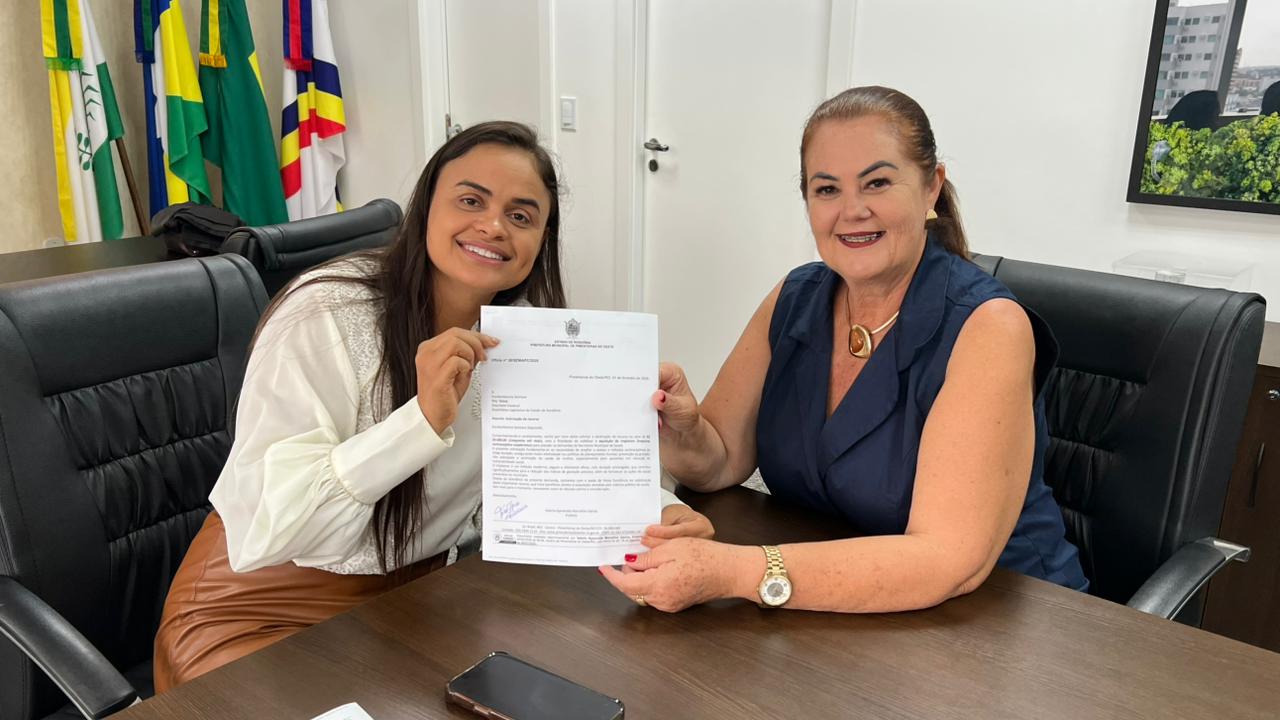 Deputada Dra. Taíssa recebe prefeita Valéria Garcia de Pimenteiras do Oeste e garante R$ 50 mil para saúde da mulher