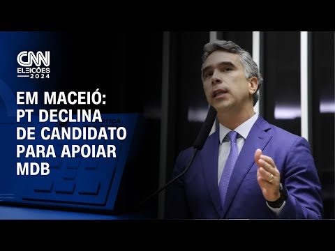 Em Maceió, o Partido dos Trabalhadores (PT) declinou de uma candidatura própria para apoiar o MDB. Segundo a âncora da CNN Tainá Falcão, quem deverá ser cotado como vice de Rafael Brito (MDB) é o deputado estadual Ronaldo Medeiros (PT). #CNNBrasil