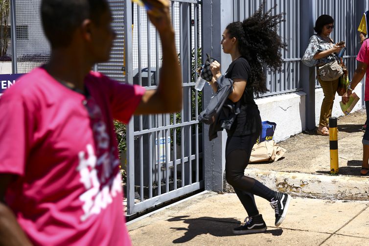 A aplicação do Enem seguiu o horário de Brasília. Os portões abriram às 12h e fecharam às 13h. A avaliação começou às 13h30.