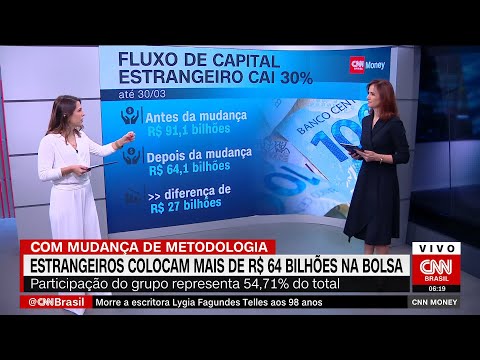 Fluxo de capital estrangeiro na B3 cai 30%, mas participação do grupo ainda representa 54,71% do total; mesmo com erro de cálculo divulgado na última sexta-feira (1º), saldo positivo ultrapassa a marca de R$ 64 bilhões #CNNBrasil
