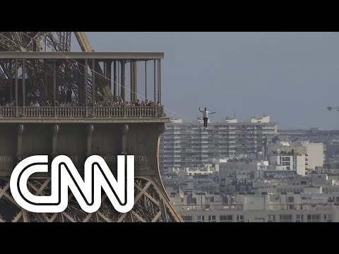 Francês atravessa céu de Paris sobre slackline | CNN Sábado