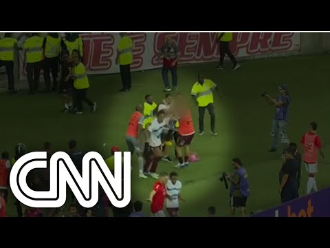 Homem invade campo com criança no colo e agride jogador | LIVE CNN