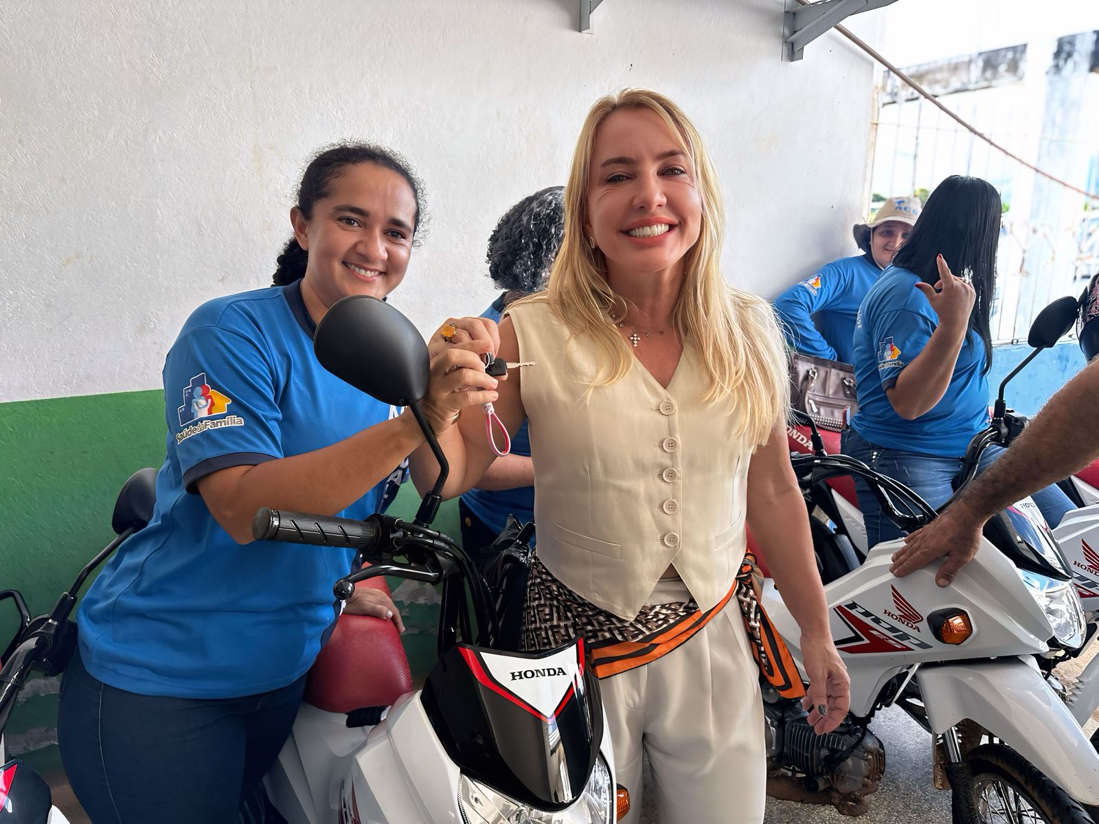 Uma cerimônia modesta marcou a chegada de benefícios aos Agentes Comunitários de Saúde (ACSs), que agora contam com 10 motos (tipo POP), orçadas em R$ 150 mil. “Os veículos trouxeram mais conforto aos servidores e também mais agilidade para os atendimentos que prestam à população”, falou Leo Menezes Reyes, titular da Secretaria Municipal de Saúde (Semusa).