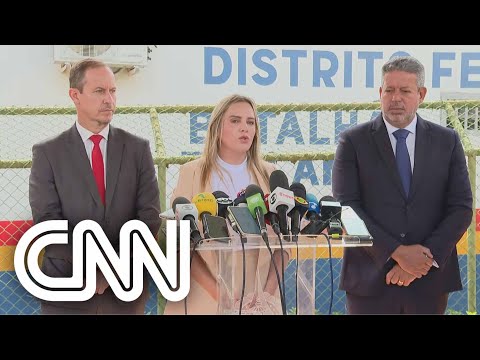 A governadora em exercício do Distrito Federal, Celina Leão (PP), o presidente da Câmara dos Deputados, Arthur Lira (PP-AL), e o interventor no Distrito Federal, Ricardo Cappelli, concederam entrevista coletiva no Batalhão da Polícia no DF, nesta segunda-feira (16), para falar sobre os desdobramentos das investigações sobre o ataque aos Três Poderes, ocorrido no dia 8 de janeiro. #CNNBrasil