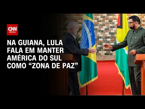 Na Guiana, o presidente Lula (PT) disse que há um “vasto campo de interesse de empresários brasileiros” para investimentos no país, convidou o chefe de Estado guianês, Irfaan Ali, para visitar o Brasil e afirmou que a aproximação entre os países visa manter a América do Sul como uma “zona de paz”. #CNNBrasil