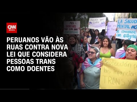 Centenas de manifestantes marcharam, na sexta-feira (17), na capital peruana, para exigir a anulação da nova lei que descreve pessoas trans, entre outras, como portadoras de doenças mentais, para poderem ter acesso aos serviços de saúde. #CNNBrasil