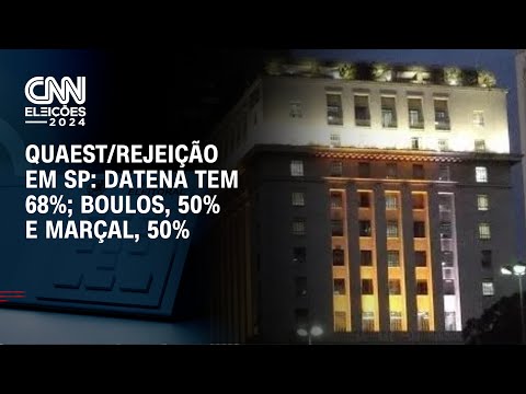 A pesquisa de intenção de voto da Quaest para a Prefeitura de São Paulo divulgada na última terça-feira (24) abordou a rejeição dos candidatos. Segundo o levantamento, José Luiz Datena (PSDB) tem a maior rejeição com 68%, seguido por Guilherme Boulos (PSOL) 50% e Pablo Marçal (PRTB) 50%. #CNNBrasil