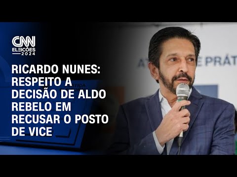 Após o secretário municipal de Relações Internacionais de São Paulo, Aldo Rebelo, descartar ser vice de Ricardo Nunes (MDB), o atual prefeito de São Paulo disse que respeitava a decisão do secretário. A escolha do vice na chapa de Nunes envolve conciliar as preferências das dez siglas que apoiam a pré-campanha, além de conseguir o aval do ex-presidente Jair Bolsonaro (PL). #CNNBrasil