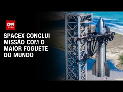 A empresa de Elon Musk, a SpaceX, concluiu uma missão espacial nesta quinta-feira (6) com o maior foguete do mundo, o foguete Starship voltou para a Terra e pousou no Oceano Índico. Essa é a primeira vez que a espaçonave conclui uma missão. #CNNBrasil