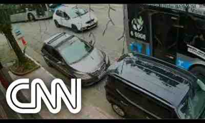 O motorista de um ônibus elétrico perdeu o controle do veículo ao fazer uma curva e atingiu três carros e um outro coletivo da mesma empresa...